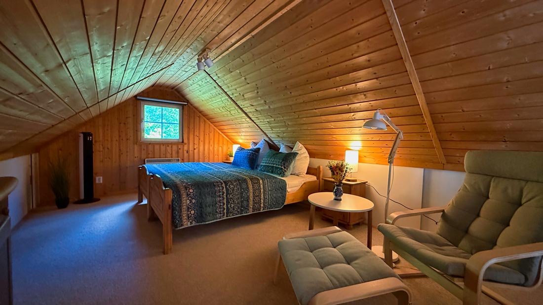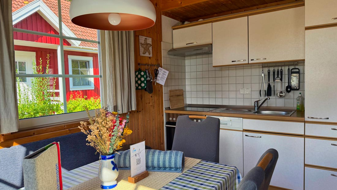 Auf einer Wohnfläche von ca. 65 m² finden bis zu 6 Personen genug Platz zum Entspannen. Im Erdgeschoss erwartet Sie ein geräumiger, lichtdurchfluteter Wohn-/Essbereich, mit hochwertigem Kaminofen und Flatscreen TV. Daran anschließend ein Schlafzimmer mit Doppelbett, ein weiteres Schlafzimmer mit Etagenbett, das Bad mit Dusche und eine voll ausgestattete Küche sowie ein Zugang zur Terrasse mit Grill. Im Obergeschoss befindet sich ein gemütlich eingerichtetes Schlafzimmer mit 2 Einzelbetten und Blick in den Garten sowie eine Sitzgelegenheit.